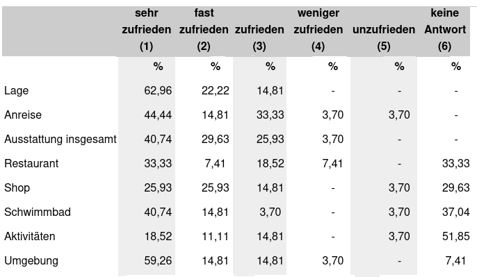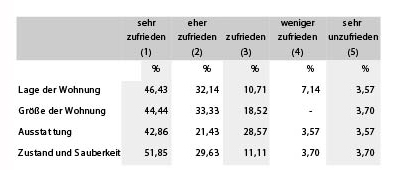 4. Wie waren Sie bezüglich folgender Punkte mit dem Appartement zufrieden? *